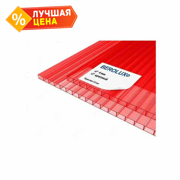 Сотовый поликарбонат 4 мм BEROLUX красный 2100х6000 мм