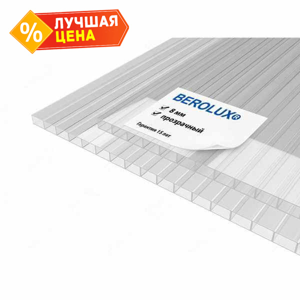 Сотовый поликарбонат 8 мм Беролюкс прозрачный 2100х6000 мм