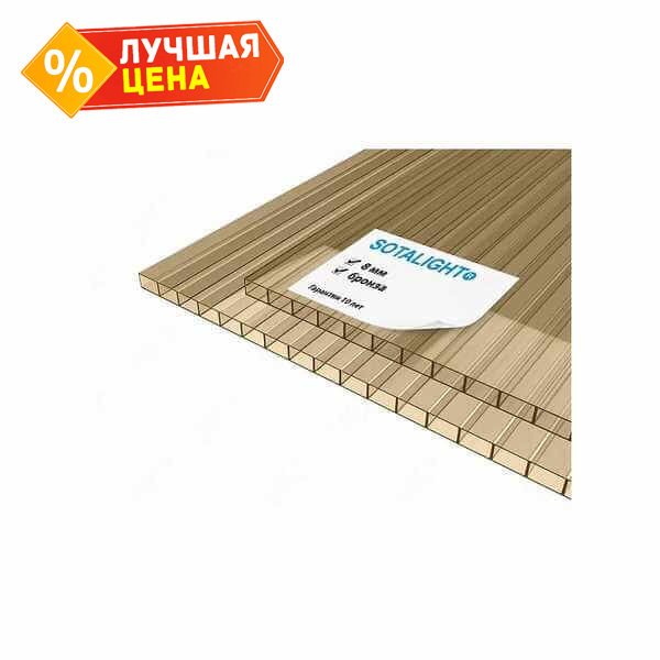 Сотовый поликарбонат 8 мм SOTALIGHT бронза 2100х12000 мм - это прочный и легкий материал, который отлично подходит для использования в различных строительных и дизайнерских проектах. Поликарбонат обладает высокой прочностью и устойчивостью к воздействию внешних факторов, что делает его идеальным выбором для создания крыш, навесов, ограждений и других конструкций.