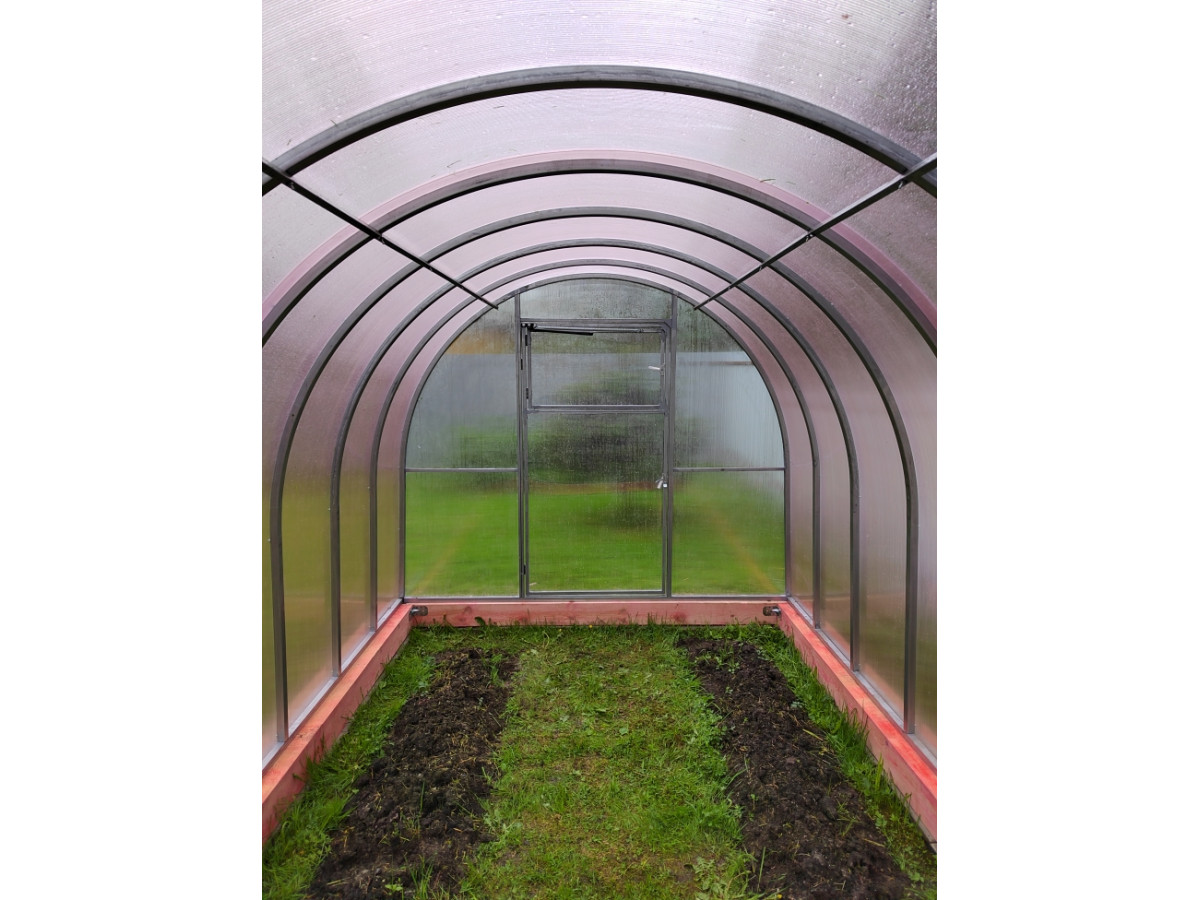 • практически прямые боковые стороны теплицы позволяют использовать пространство по максимуму и выращивать культуры, плотно прилегающие к стенкам