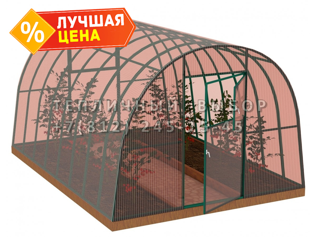 Теплица из поликарбоната-фито Усиленная Арочная 3х4 h=2.1 м профиль 30х30 мм Зеленый