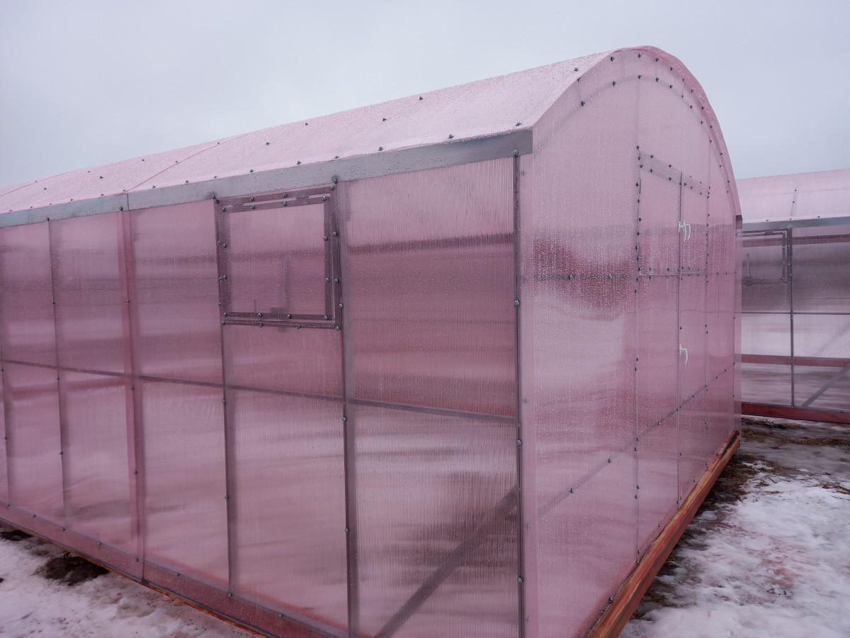 • теплица рекомендована для северных широт с большим количеством осадков, выдерживает порывистые ветра и сильные снегопады, не деформируется под слоем слежавшегося снега толщиной до 90 см;
